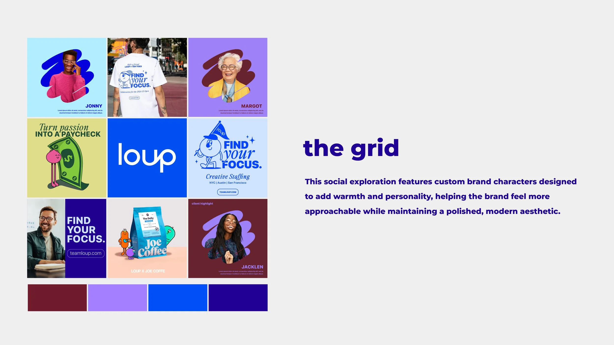 Create a distinctive brand character for Loup Recruitment that adds personality to the brand and can be leveraged across social content to make recruitment messaging more engaging, modern, and recognizable.